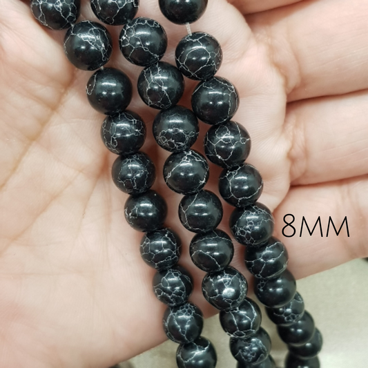6mm-8mm Magnesite Black Beads Black Turquoise Beads for Jewelry Making Turquiose Beads for Man Jewelry Dopals Beads Black and White Jewelry